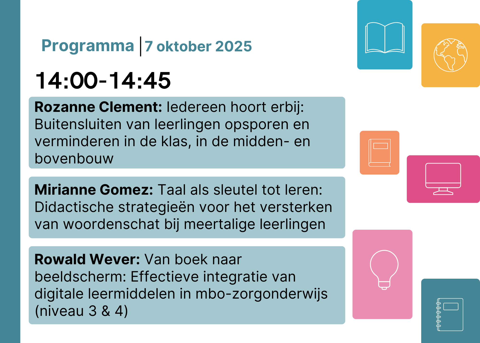 • Mirianne Gomez: Taal als sleutel tot leren: Didactische strategieën voor het versterken van woordenschat bij meertalige leerlingen