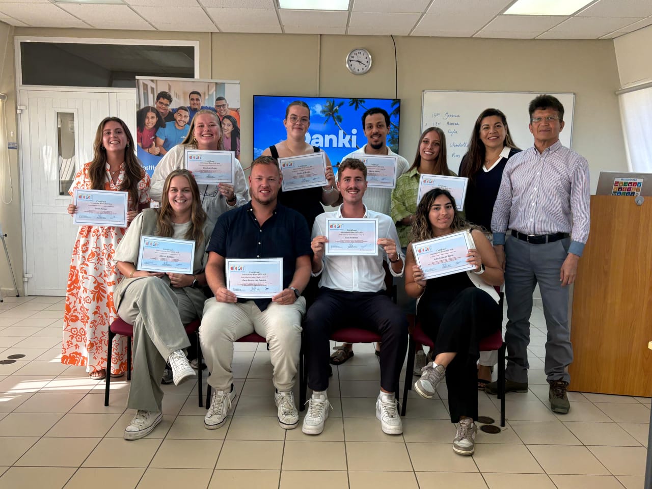 Ten students have successfully completed the international minor Globalisation, Diversity, Multilingualism & Education (30 European Credits) at the Instituto Pedagogico Arubano (IPA). These students: Hamza Jabeur, Charlotte Helder, Jessica de Bruijn, Roos Span, Aylin Salawan Bessie, Suzan Nassar, Manon Kommer, Gertrisia Krozendijk, Bart-Jeroen van Leunen and Boaz Kommer — spent approximately five months on Aruba following an intensive academic and practical programme.